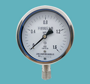 不銹鋼壓力表使用與購(gòu)買(mǎi):1、全不銹鋼壓力表不適用于外界有氯、硝酸和過(guò)氯化氧等強(qiáng)化劑環(huán)境。2、不銹鋼壓力表外殼需噴涂PTEE聚四氟乙烯涂層時(shí),訂貨時(shí)注明。3、不銹鋼壓力表接頭螺紋如需特殊要求時(shí)請(qǐng)說(shuō)明。4、全不銹鋼壓力表分普通型和耐震型。5、訂貨請(qǐng)說(shuō)明名稱、型號(hào)及測(cè)量上限