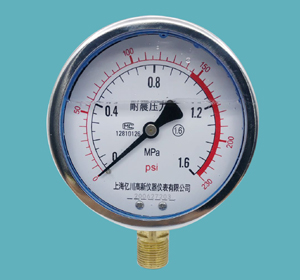 電接點壓力表的作用原理是測量系統(tǒng)的彈簧管在被測介質(zhì)的壓力下,迫使彈簧管之末端產(chǎn)生相應(yīng)的彈性變形一位移,借助拉桿經(jīng)齒輪傳動機構(gòu)的傳動并予放大,由固定于齒輪軸上的指針(連同觸頭)將被測值在度盤上指出來。與此同時,當(dāng)其與給定針上的觸頭(下限或上限)相接觸(或斷開)的瞬時,通過電路系統(tǒng)中的繼電器及接觸器的作用(將電源接通或切斷),使得控制機構(gòu)作出相應(yīng)的動作(工作與否),并可發(fā)出電信號,以達到白動控制和報警的目的。